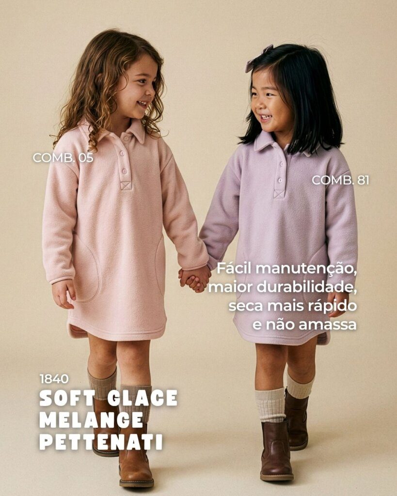 Tecidos desenvolvidos com microfibras de alto desempenho e estruturas térmicas inteligentes, que ajudam a equilibrar a temperatura do corpo e permitem que as crianças continuem explorando, brincando e se movimentando nos dias mais frios.