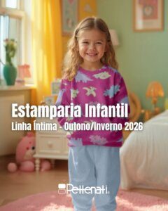 Encante-se com a coleção infantil de estamparia para linha íntima Outono/Inverno 26 da Pettenati, inspirada no tema Aventura a qualquer hora — uma proposta pensada para acolher o descanso e transformar cada noite em uma nova descoberta.