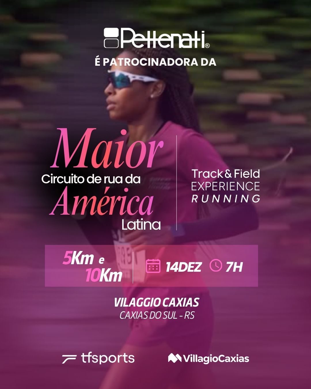 A Pettenati é patrocinadora da 2ª edição da Track& Field Experience Running - Caxias do Sul, que acontecerá no dia 14 de dezembro de 2025 no Shopping Villagio Caxias.